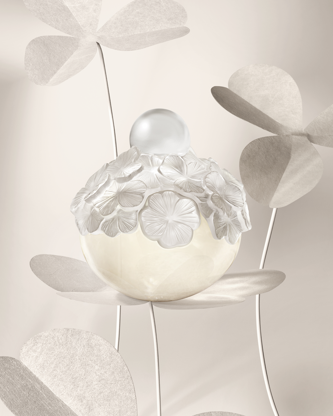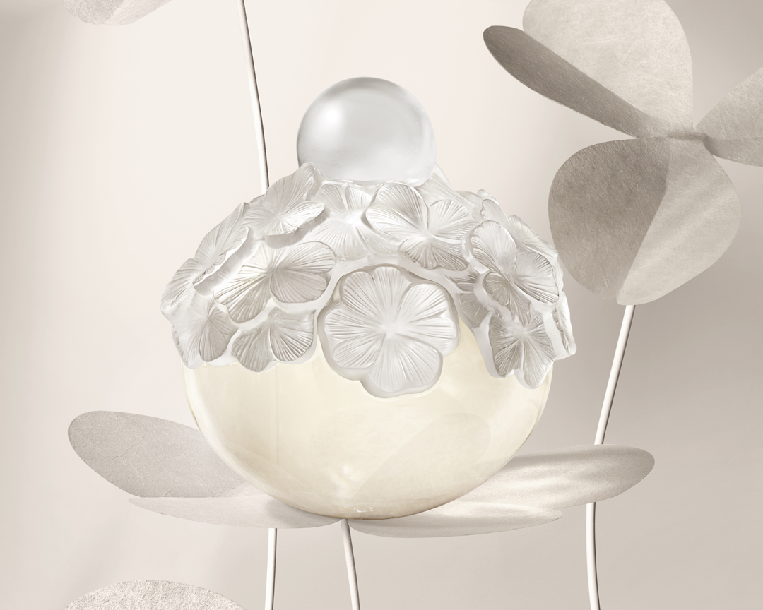 The art of crystal making and Haute Parfumerie by Lalique joins the poetic imagination of Mikimoto, the master of Pearl to create an unexpected symbol of luck and beauty.