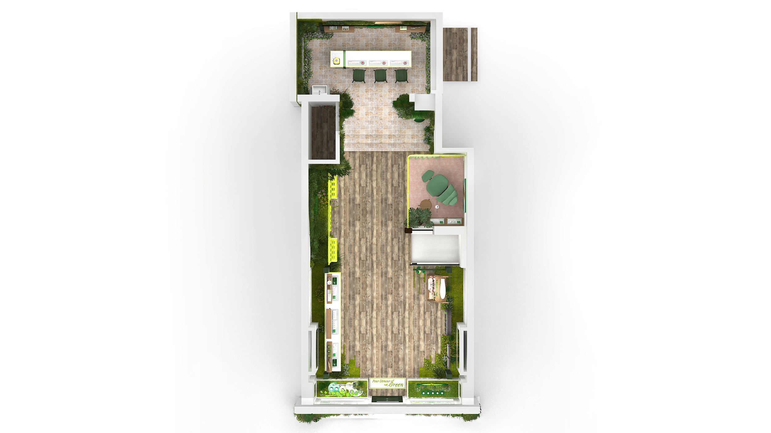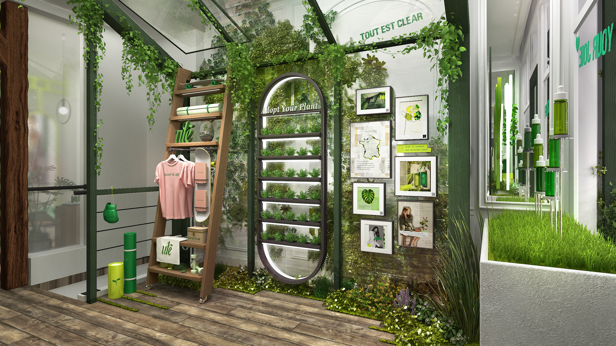 The concept reflects the brand’s DNA, highlighting ingredient transparency and vertical farming cultivation. A welcoming space designed as a meeting point to discover the brand and take part in workshops.